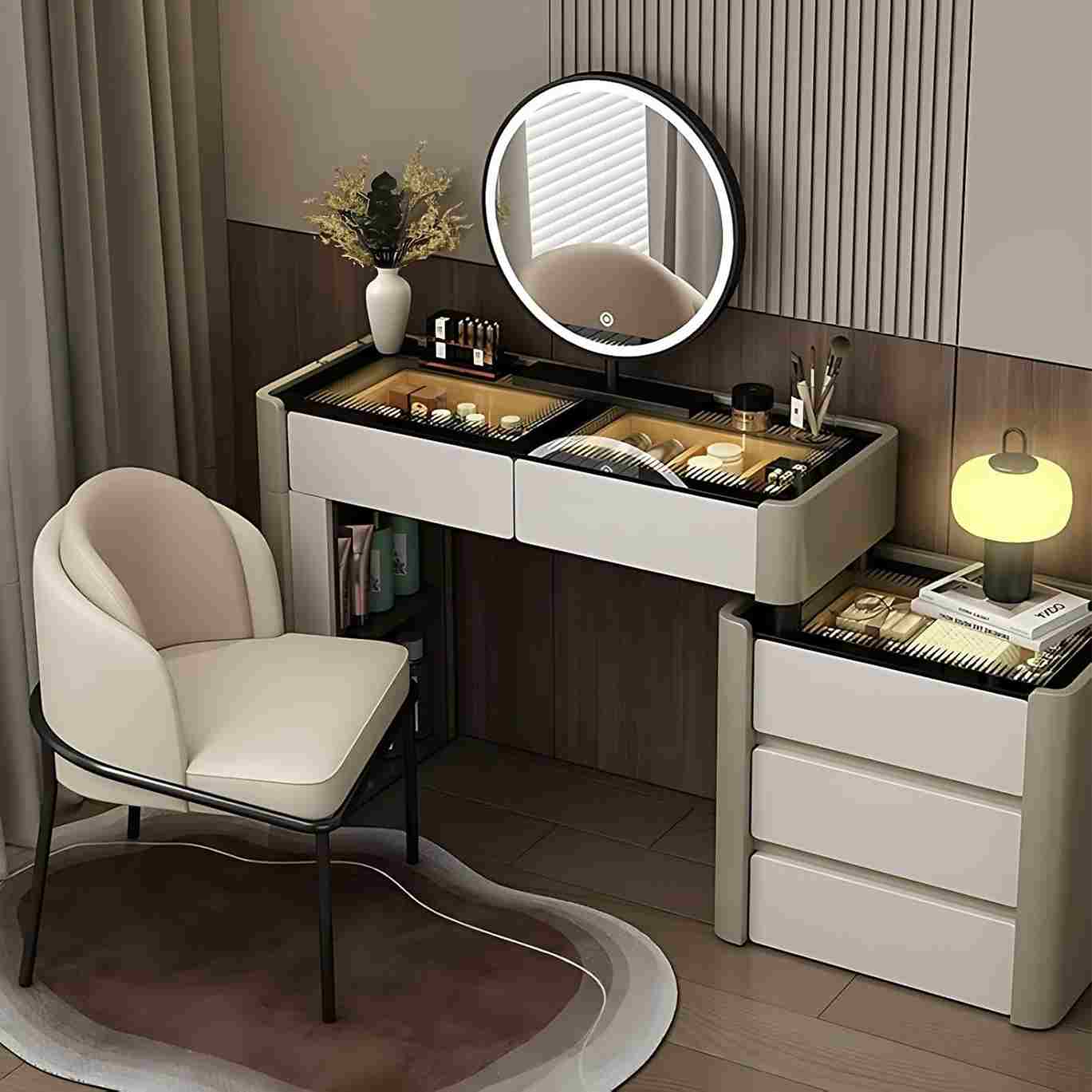 Designed for upscale interiors, the Vittoria Prestige Vanity Table features clean architectural lines, smooth storage compartments, and a refined luxury aesthetic.