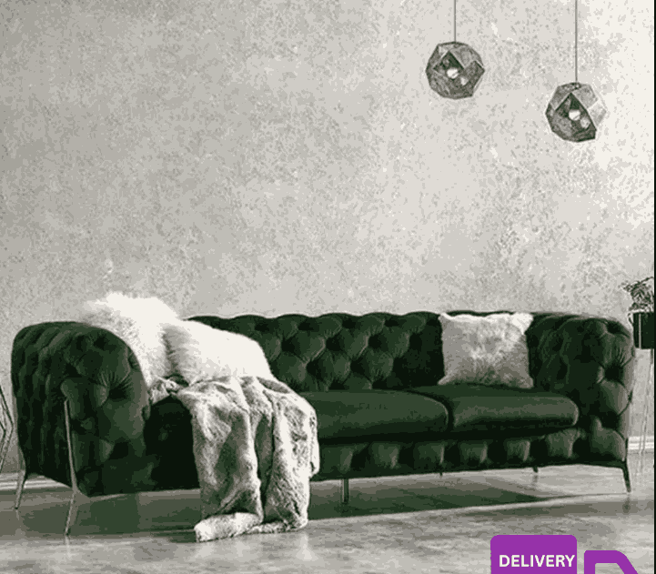 Elegant velvet sofa with premium texture and refined comfort.