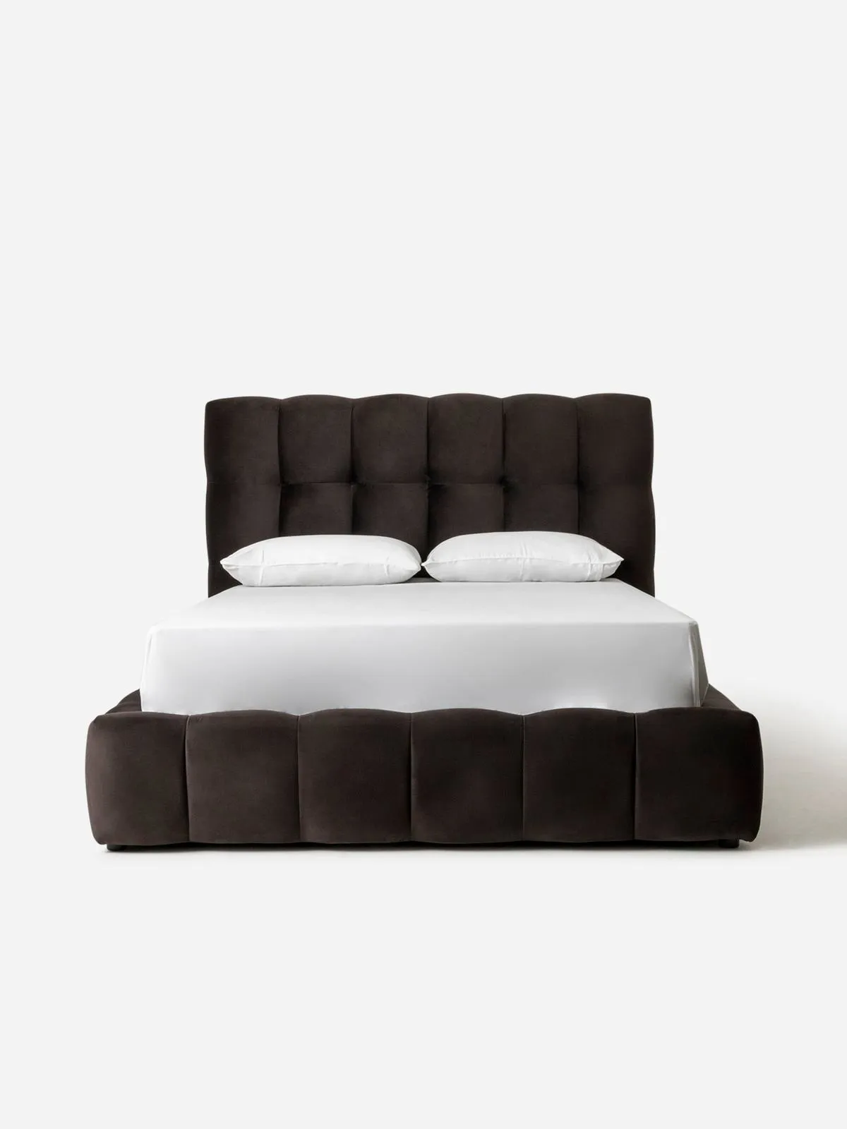 Sumptuous and inviting, the Deluca Tufted Bed in LuxGuard Velvet features all-over, deeply cushioned tufting on the headboard and base for a plush, cloud-like feel. Fully upholstered with a modern shape and large-scale square tufts, the Deluca has a low-lying wide profile, making it the perfect choice for a contemporary bedroom.