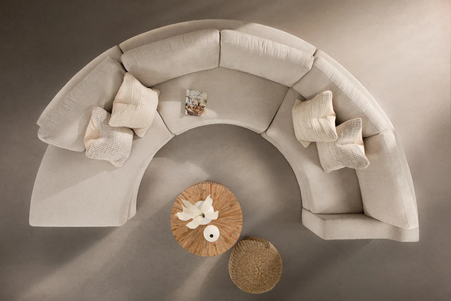 The Embergrain Modular Grand C-Shape Daybed brings elegance and expansive comfort to your living space. Upholstered in premium taupe fabric, this spacious curved couch is designed for pure indulgence. Its sweeping lines and inviting profile make it an unmistakable centrepiece for contemporary lounges, ideal for both daytime lounging and evening relaxation.