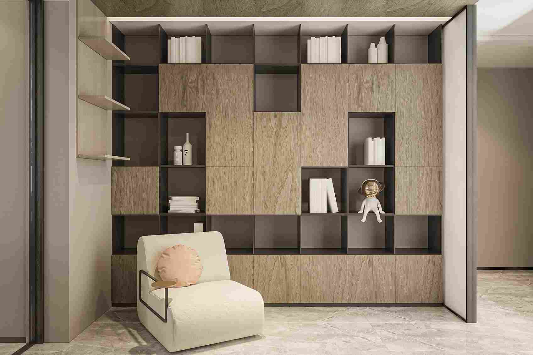 Clean modern wooden bookcase for living rooms and offices.