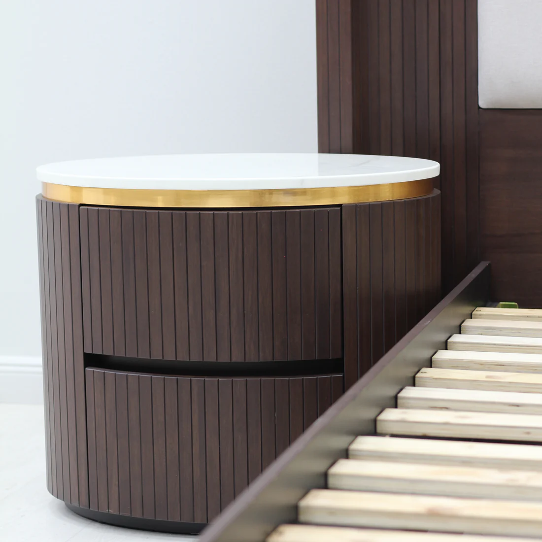 Elegant vertical slatted-back headboard design
