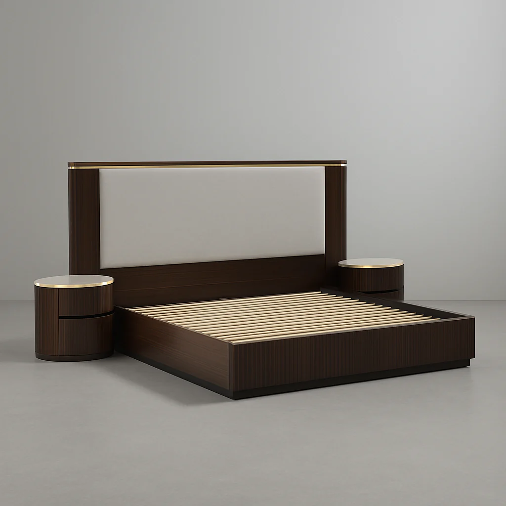 Built on a solid hardwood frame for durability and stability, the Velora bed combines timeless craftsmanship with modern aesthetics. The plush upholstered detailing enhances comfort, while the sleek, clean-lined silhouette complements both minimalist and luxury-themed interiors.