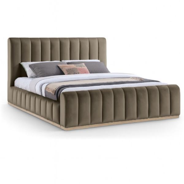 The Vespera Royal Bed offers deep cushioning, refined stitching, and a plush aesthetic ideal for warm, sophisticated bedroom settings.